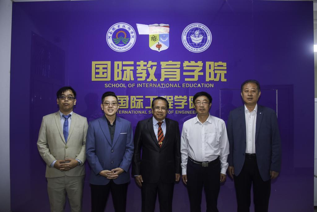 5月29日上午,河南职院与马来西亚国民大学中外合作办学机构2023年度首次工作会议在公司召开。马来西亚国民大学国际教育部主任Dr. MUHAMMAD BIN HUSSIN、马来西亚国民大学信息科学与技术学院经理Dr. NURHIZAM BIN SAFIE MOHD SATAR、马来西亚大学联盟主席Dr. WONG TZE WEI受邀参加,公司董事长梅乐堂、副董事长王皓出席会议,国际合作交流处、现代信息技术学院相关负责人参会,王皓主持会议。