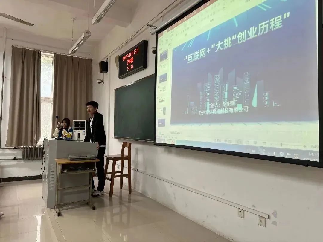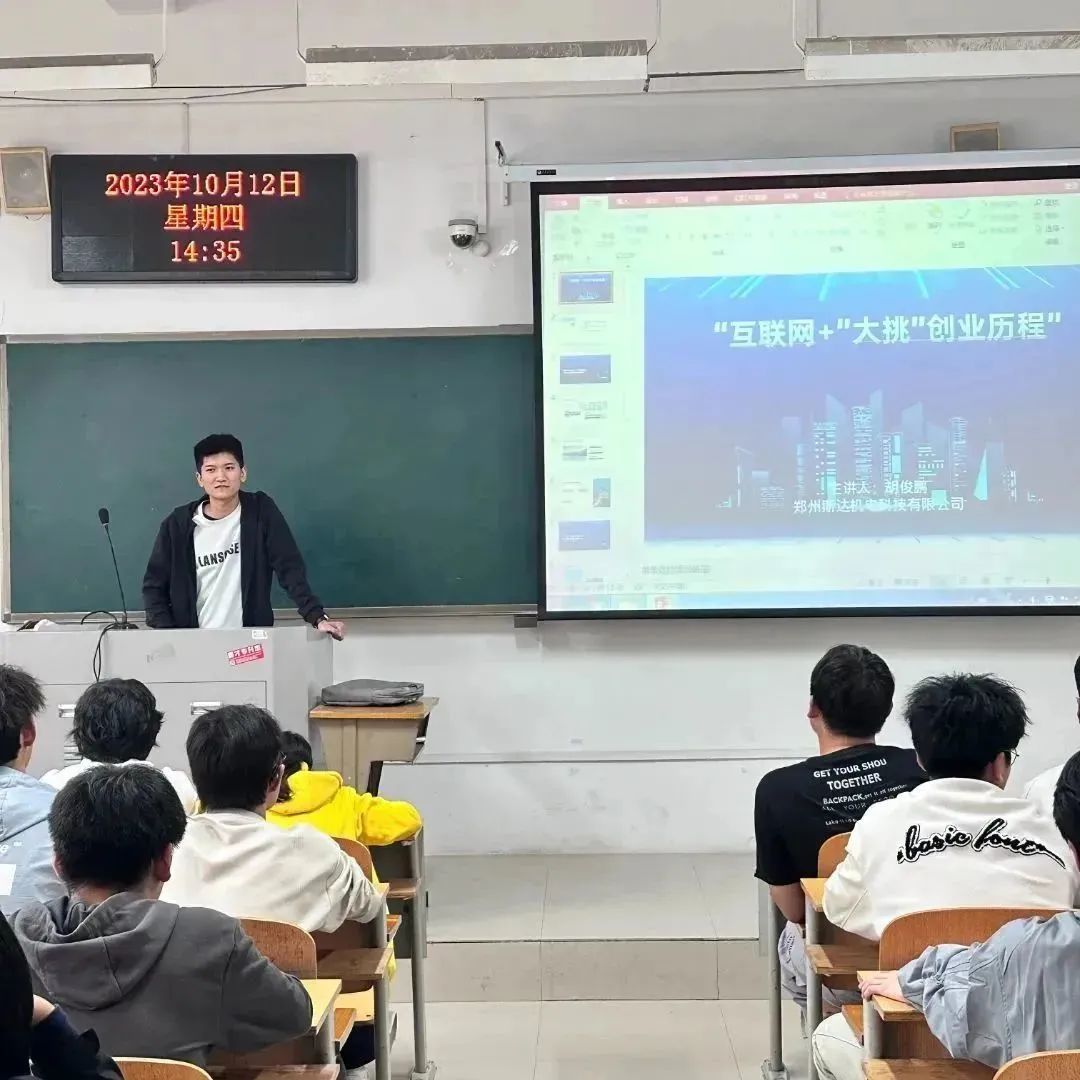 胡俊鹏还分享了立足所学专业,创办科创型企业的心路历程和发展经验,介绍了学校对老员工创新创业的扶持政策,”炫耀”了自己读书和创业期间所收到的来自学校各方面的支持和帮助,鼓励同学们把握好大学时光,为自己人生路上的创新创业打下坚实基础。