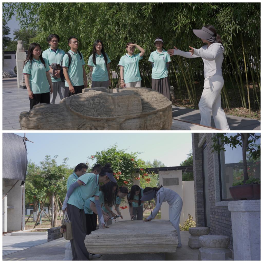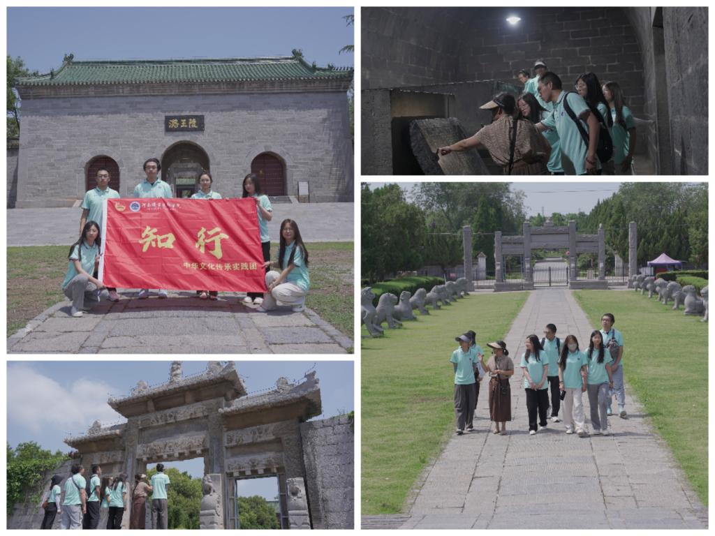 在全国重点文物保护单位---潞王陵,队员们跟随讲解员老师一起参观了神道、潞简王地宫、五供,明楼、次妃墓、牡丹园等,领略了“中原定陵”穿越多个时代的厚重历史变迁。历经战火洗礼与风雨剥蚀,宏伟磅礴的青白石建筑、精工细凿的神道石刻,跨越历史烟云,呈现在后人面前,无声讲述着古人跨越沧桑的精湛技艺和超越生死的智慧。队员们在参天古树拱卫的遗迹中流连,不仅感悟到了中华墓葬文化丰富的历史信息和人文内涵,还对自古有“南通十省、北拱神京”之称的新乡市的历史与文化沿革有了更为直观的认识。