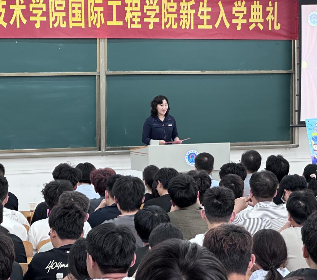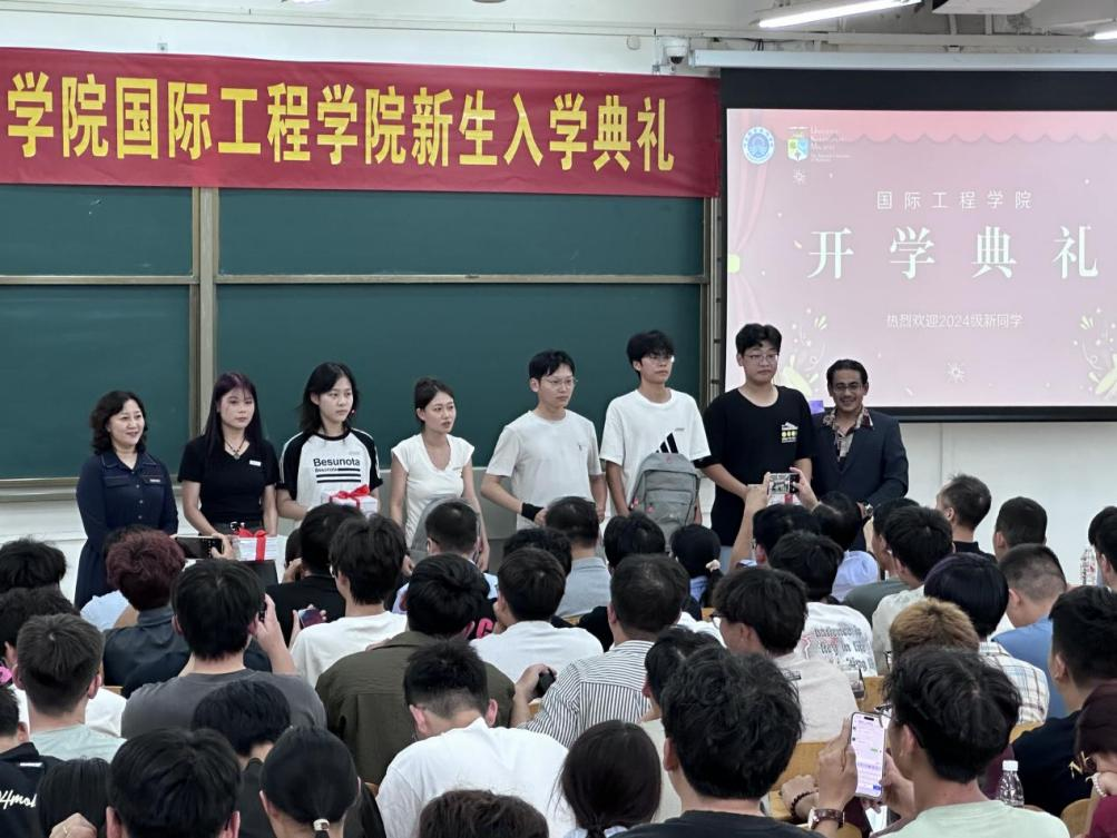 国际工程学院学院副经理于瑾作为教师代表介绍了学院的基本情况,也表达对同学们的期望,希望大家不仅在学术上追求进步,也在品德修养、社会责任感和国际担当上奋勇争先。2024级计算机应用技术(中外合作办学)专业侯安淇作为新生代表在发言中表达了自己对老员工活的憧憬,决心以更加开放的心态、更加饱满的热情面对未来的挑战。