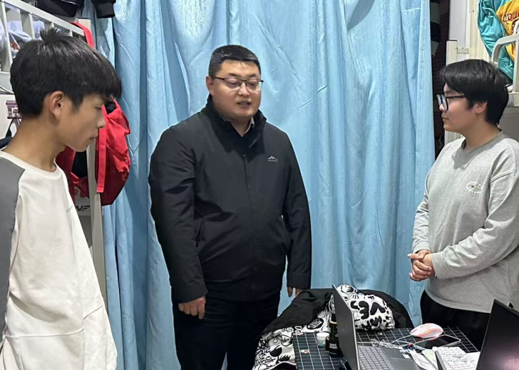 解书记一行仔细检查宿舍内的用电安全、消防安全及卫生状况,耐心地向同学们讲解冬季防火、防盗、防传染病等安全知识,并提醒大家自觉遵守学院的规章制度,严禁晚归、夜不归宿等违规违纪行为,若降温后水面结冰,勿在冰面上行走,以防止落水事件发生。