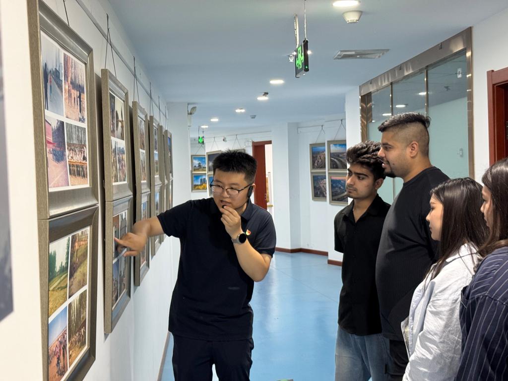 知启街社区党支部书记杨广昊首先带领职工来到党群二楼摄影展长廊,为他们讲述一张张老照片背后的社区建设故事。其中有学校组织员工进行环境卫生大扫除的场景,有举办文艺汇演丰富居民精神生活的画面,还有在抗击自然灾害时为居民提供援助的感人瞬间。职工听得津津有味,不时提出问题,对社区居委会在中国社区发展中发挥的重要作用称赞不已。来自塔吉克斯坦的职工Sohib(立轩)还分享了自己国家是如何通过志愿组织开展社区服务的,以及塔吉克斯坦居民是如何参与到社区决策中的。