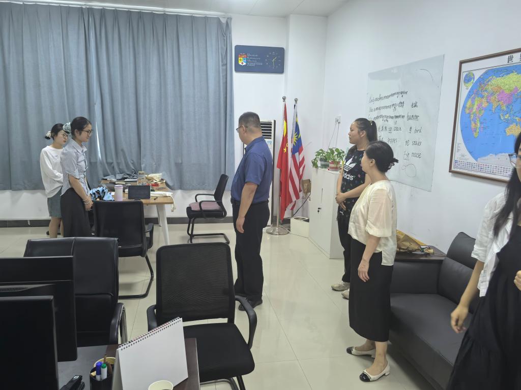 解鹏程首先带领全体成员学习了习近平总书记关于安全生产的重要论述及相关文件,结合学院实际,强调“安全是教学科研的生命线,人人都是安全生产的责任人,将安全意识融入日常各个环节”。随后,参会人员集体观看了安全生产警示教育片,通过真实案例,强化了教师“防风险、除隐患、保安全”的底线思维。会后,解鹏程带领学院相关负责人员对分走廊消防设施、中外文化交流中心、办公室等重点区域开展全覆盖检查。