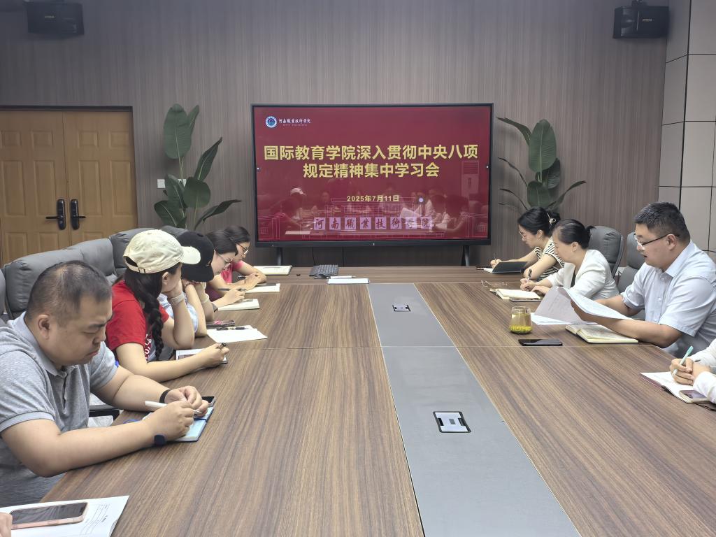 2025年7月11日下午,bw必威西汉姆联官网在健行楼302会议室召开深入贯彻中央八项规定精神学习教育集中学习暨警示教育会。会议由党支部书记解鹏程主持,学院全体教师参会。