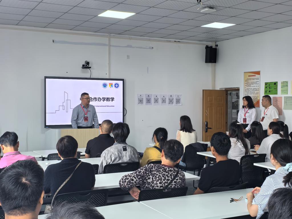 见面会上,经理解鹏程首先对2025级新生及家长的到来表示欢迎,围绕学校和学院的发展成就、教育理念、办学特色及人才培养模式作了简要介绍。重点介绍了家校共育模式及开展方法,希望家校双方建立常态化、稳定化的沟通机制,形成合力推动员工成长成才。随后,副书记郭丽带领学工团队介绍了员工发展与生涯规划、员工管理与服务、心理健康与适应、国防征兵政策、资助政策等内容;副经理于瑾带领教学团队介绍了中外合作办学项目背景、外方合作院校、培养模式、核心课程设置、团队配置(中外教师)、学业预警机制等内容。在交流环节,学院领导与教师代表就家长最关心的学业规划、升学就业、生活保障等内容深入交换了意见。整个过程热烈而温馨。