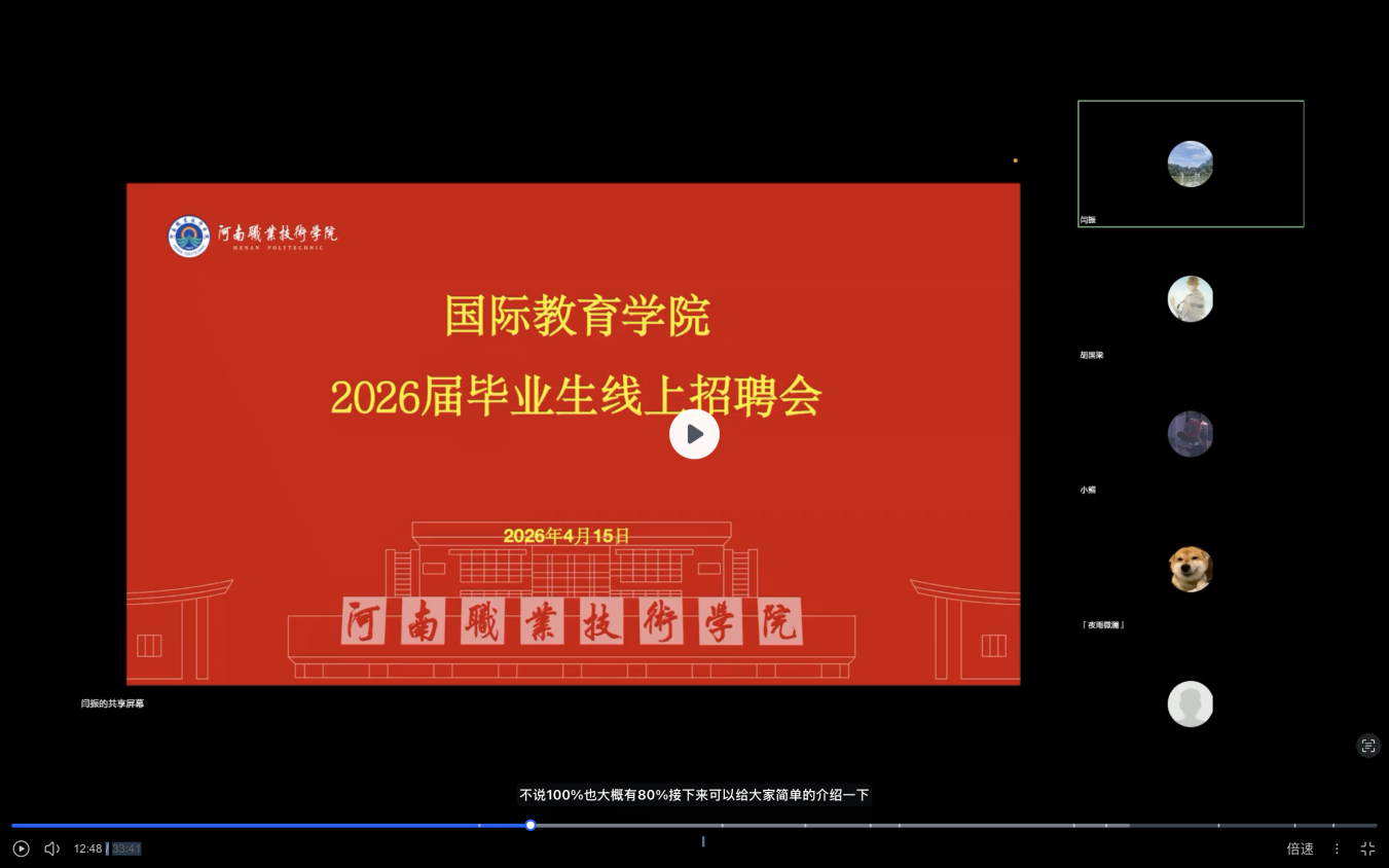 本次招聘会聚焦学院人才培养特色,精准邀约长城汽车、新加坡日立公司、河南迈乐加餐厅食品有限公司等企业参会,覆盖汽车制造、境外工业就业、餐饮管理等多个领域。招聘过程中,各企业负责人依次通过线上平台,详细介绍企业发展历程、主营业务、岗位需求、薪酬待遇、晋升通道及人才培养体系等内容,让毕业生全面了解企业概况与用人标准。在互动答疑环节,企业负责人针对毕业生普遍关注的岗位要求、实习转正、海外工作机会、职业发展规划等问题逐一细致解答,现场交流氛围热烈、互动高效,有效提升了人岗对接精准度与契合度。