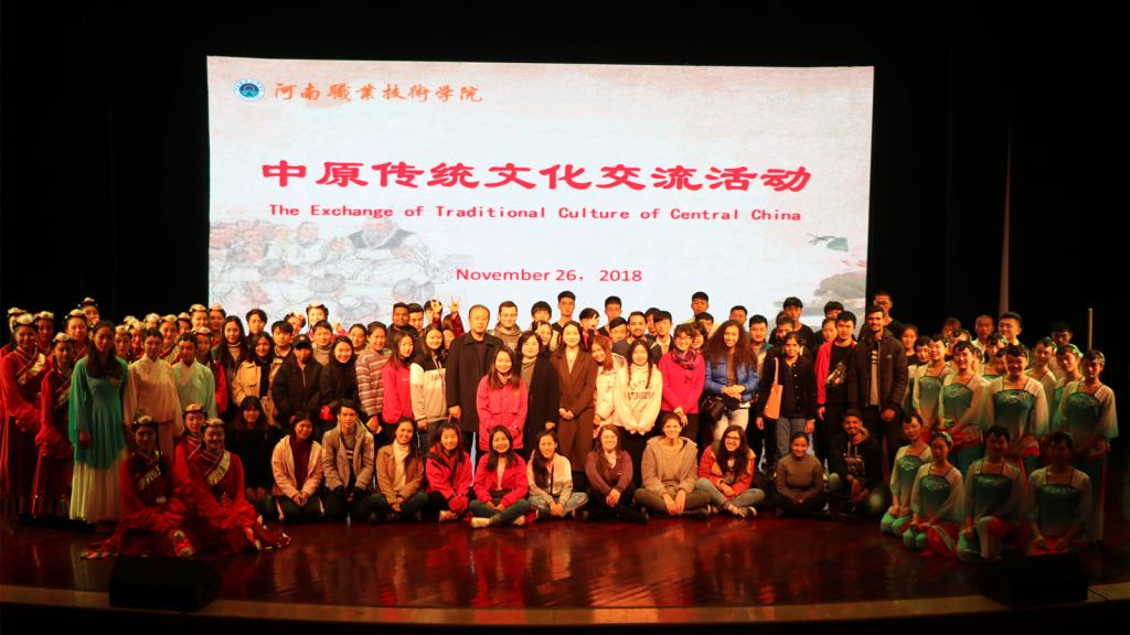 11月26日下午,来自郑州大学的8个国家的49位职工以及职工部教师共计55人,与学校中外合作办学员工进行了中原传统文化的交流活动。本次活动在音乐厅举行了开幕式,学校副董事长王皓出席并致辞。音乐学院、烹饪食品与健康学院、团委和合作交流处共同协作,积极酬备了此次交流活动。