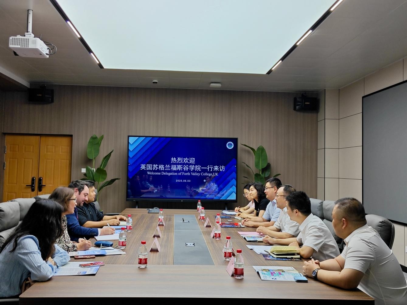 鲁冬在致辞中代表学校对代表团的来访表示热烈欢迎,并简要介绍了学校在人才培养、国际交流与合作、中外合作办学等方面的情况。他表示,英国苏格兰福斯谷学院作为全球领先的技能与创新教育标杆,在职业教育领域享有盛誉。两校在培养理念和培养方式上高度契合,期待以此次交流为契机,与福斯谷学院在专业建设、团队培训、员工交流等领域深化合作,共同探索职业教育人才培养新模式。