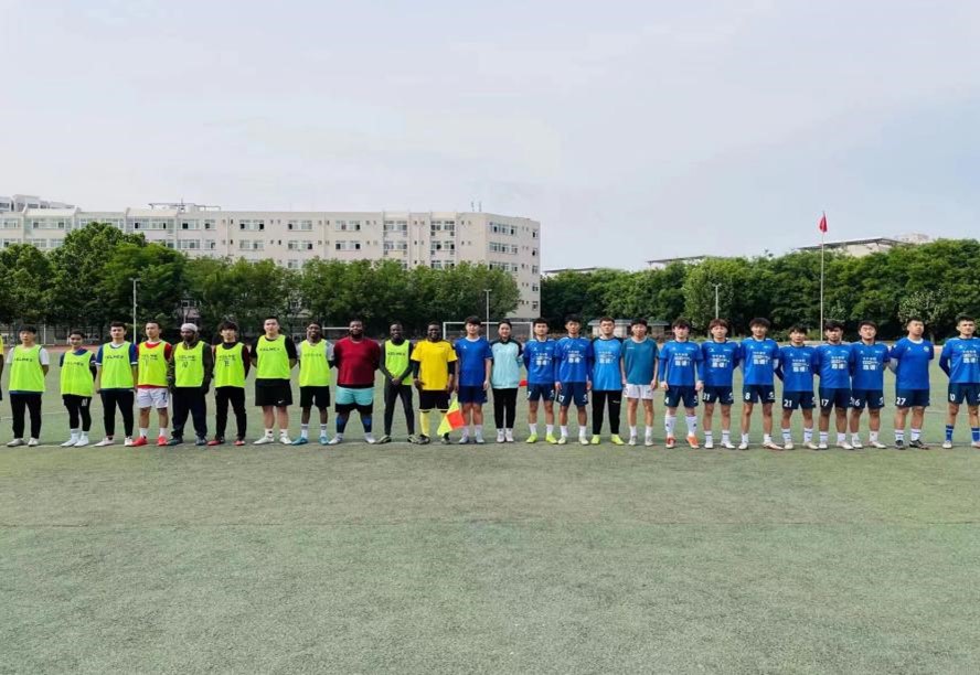 2022年5月14日下午,职工与校员工足球队在运动场举行了首场足球联谊赛。