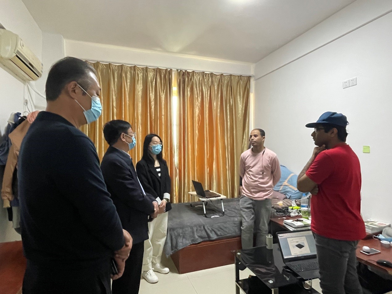 职工向校领导汇报了个人学习生活状况,由衷感谢学校领导和老师们长期以来的关心和帮助。他们纷纷表示,将主动配合学校做好疫情防控工作,以积极的态度、良好的状态投入到这段特殊时期的学习生活中。