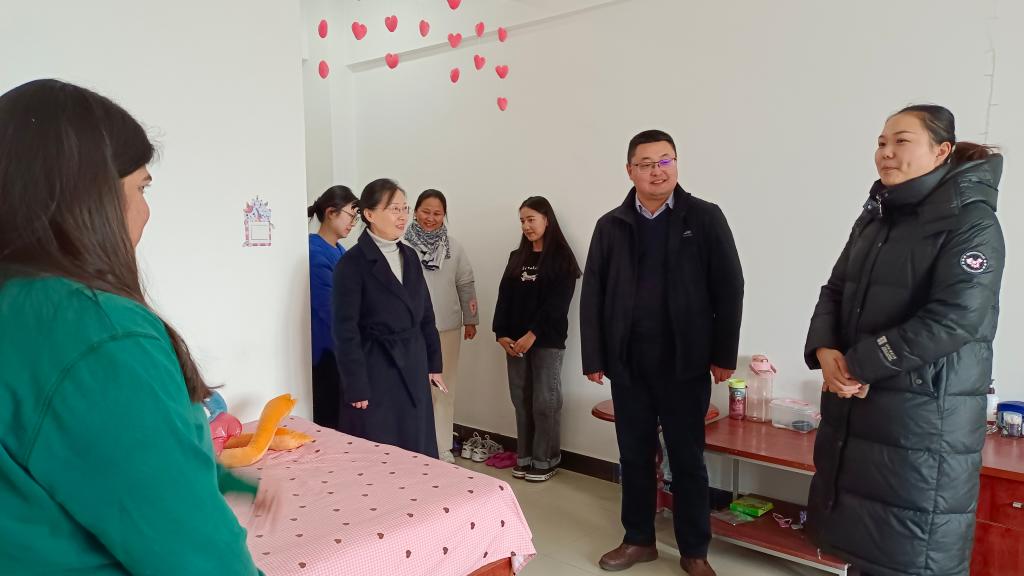 12月10日,bw必威西汉姆联官网(国际工程学院)经理兼党支部书记解鹏程、副书记郭丽、团总支书记樊林、职工辅导员一行深入职工宿舍看望慰问来华职工。