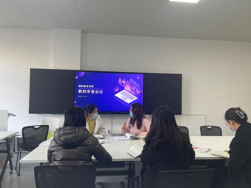 为加强和规范教材建设与管理,提高教材选用质量,国际教育公司教材选用委员会于12月12日下午在国教院301召开2022-2023学年第二学期预订教材审查会议,会议由副经理于瑾主持。
