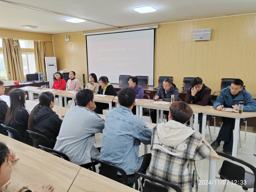 为深入了解计应中外班员工的思想动态和生活学习等各方面情况,搭建沟通交流平台,零距离倾听员工心声,计算机应用技术教研室于11月7日在笃行楼525召开了一场别开生面的员工座谈会,教研室全体教师与计应专业中外班员工代表齐聚一堂,共谋发展,共话未来,座谈会由教研室主任翟慧主持。