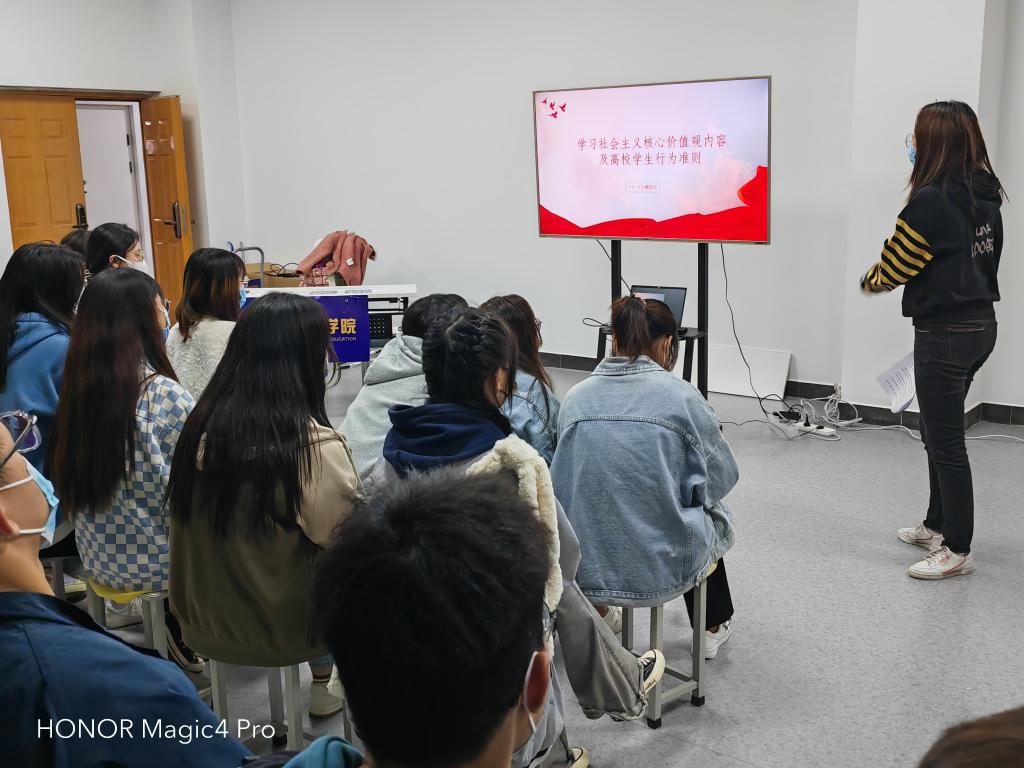 青年阶段是一人的世界观,人生观、价值观行程、完善、趋向成熟时期。一种价值观要真正发挥作用,必须融入生活,让人们在实践中感知它、领悟它,坚定文化自信,实现文化资源的有效融合,将文化建设与价值观有机融合,提升教育效果。学院全体辅导员以进课堂,进宿舍为主要形式,将主题班会与思想宣传、宿舍建设有机结合,将培育社会主义核心价值观、融入公司产品全过程,引导学院师生自觉成为社会主义核心价值观的践行者和传播者。(供稿:樊林;审稿:董岳磊)