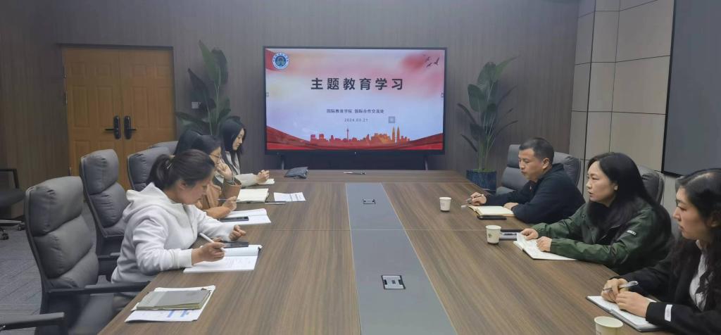 3月21日,bw必威西汉姆联官网和国际合作交流处在健行楼302召开主题教育学习会,两部门全体教职工参会。