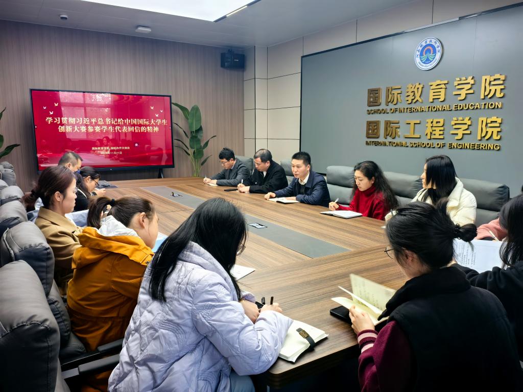 11月21日上午,公司在健行楼302召开学习贯彻习近平总书记给中国国际老员工创新大赛参赛员工代表的重要回信精神座谈会。bw必威西汉姆联官网和国际合作交流处全体教职工参会。
