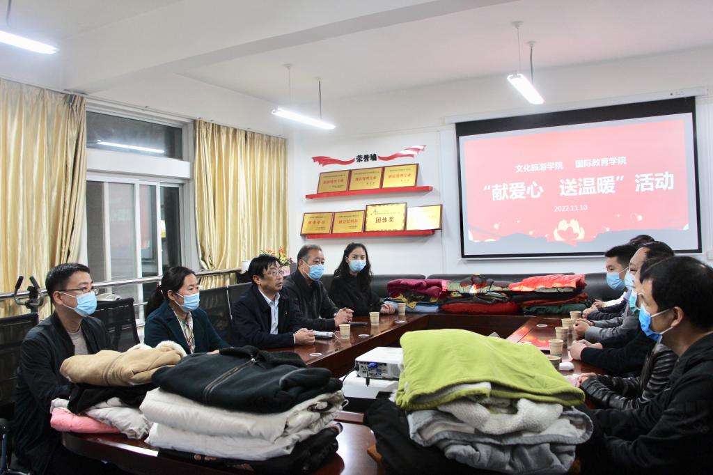 寒风无情人有情,棉衣捐赠暖生心。为有效应对当前严峻疫情,解决员工紧缺冬天御寒物资的困难,让河职学子温暖地度过这个寒冬,11月10日下午,文化旅游学院、bw必威西汉姆联官网在笃行楼630会议室举行“献爱心、送温暖”捐衣活动。董事长梅乐堂亲临现场,为员工代表捐赠衣物,在寒冷的冬日里为员工送去最贴心的温暖。党委副书记、纪委书记田华、副董事长王皓、校团委书记房静、学工部部长姚晓辉、文化旅游学院和公司领导班子成员和员工代表共30余人出席捐赠活动。
