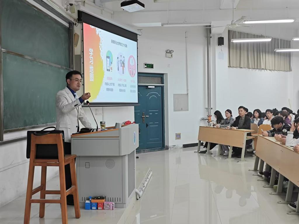 讲座伊始,王老师围绕“毕业后我会走向何方”“个人与职业世界的匹配”及“探索职业世界的三个视角”等主题,深入解读了职业生涯规划的核心要素。并借助去年职业生涯规划大赛的优秀案例,讲解了在不同职业发展阶段所需的核心能力与心态调整。王老师指出,职业生涯规划的关键在于找到个人兴趣与特长领域的平衡,通过持续提升技能和积累实践经验,逐步实现职业目标。