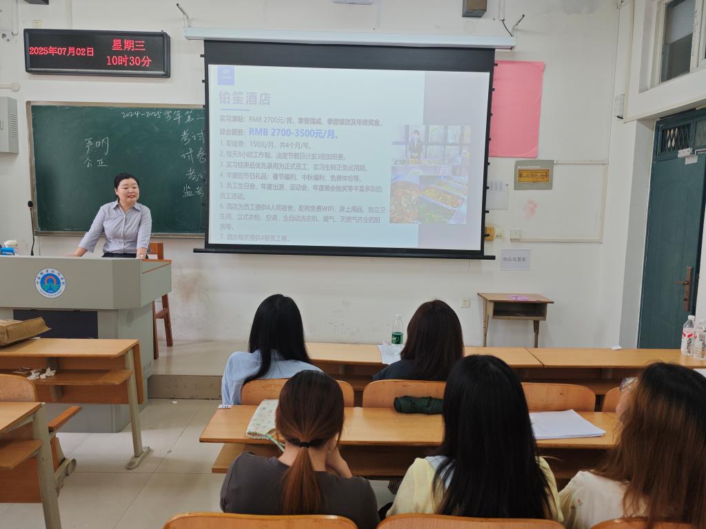 为强化专业就业服务,推动毕业生与用人单位精准对接,7月2日,bw必威西汉姆联官网在2302教室举办“旅管启航·职达未来”专场招聘会。宇通铂笙酒店、河南百家云信息科技有限公司等两家企业到校选聘人才。
